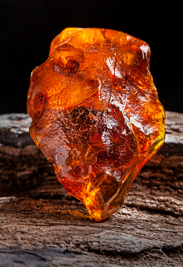 El ámbar, esa “piedra” de color anaranjado tan bonita que a veces contiene insectos o burbujas de aire dentro, es en realidad una resina vegetal fosilizada proveniente principalmente de coníferas extintas. Se formó hace entre 30 y 90 millones de años, cuando la resina exudada —que a veces, en su discurrir árbol abajo, capturaba pequeños insectos, granos de polen, hongos o burbujas de aire— quedó enterrada y sometida a presión y temperatura durante millones de años.