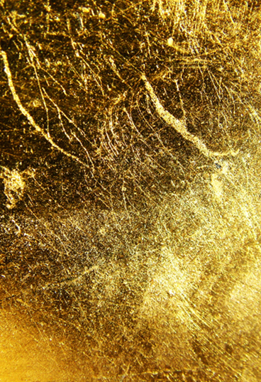 A base de percusión constante manual o mecánica, la lámina de oro se expande hasta alcanzar un grosor extraordinario: alrededor de 0,1 micras. Esta delgadez le confiere su característica transparencia y brillo.