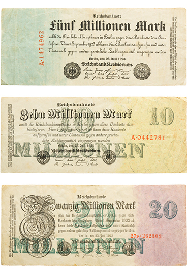 - Los billetes se imprimían en denominaciones cada vez más altas: millones, miles de millones y billones de marcos.